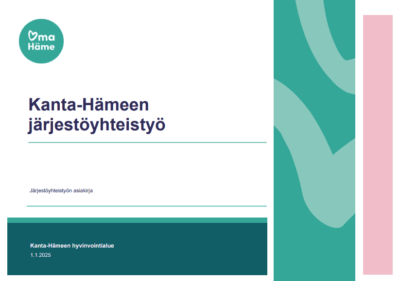 Vuoden vaihteessa julkaistu järjestöyhteistyön asiakirja selkeyttää ja vahvistaa Kanta-Hämeen hyvinvointialueen ja järjestöjen välistä yhteistyötä. Se tarjoaa tietoa alueen järjestökentästä ja järjestöverkostoista, järjestöyhteistyön muodoista sekä järjestöjen toimintaedellytysten tukemisesta. Asiakirja on tarkoitettu ihan kaikille: asukkaille, järjestöjen edustajille ja hyvinvointialueen työntekijöille. Asiakirja toimii myös konkreettisena työkaluna yhteistyön käytännön toteuttamiseen. Asiakirja löytyy täältä