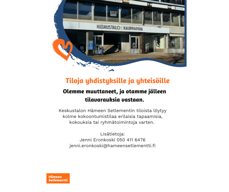 Hämeen Setlementti on muuttanut, ja tilat ovat jälleen myös yhdistysten ja järjestöjen vuokrattavissa ilta -ja viikonloppuisin.